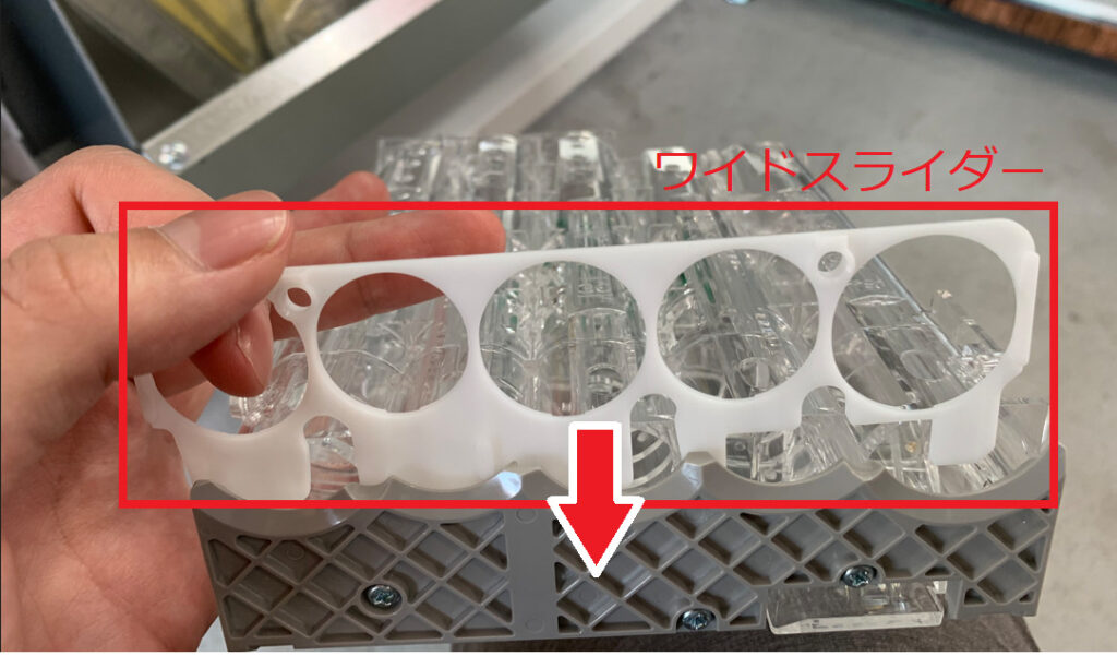 ワイドスライダーが機械にくっついている場合は取り外し、カセットチューブに戻します。