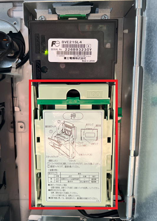 紙幣金庫(ビルバリデータ)がしっかり閉じているかご確認ください。