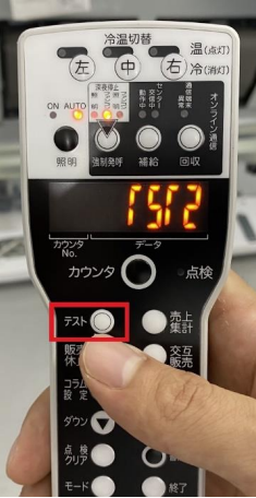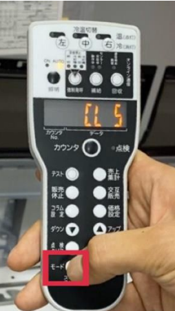 写真のように商品を排出したいコラム(今回の場合は<CL 5>)を選び、