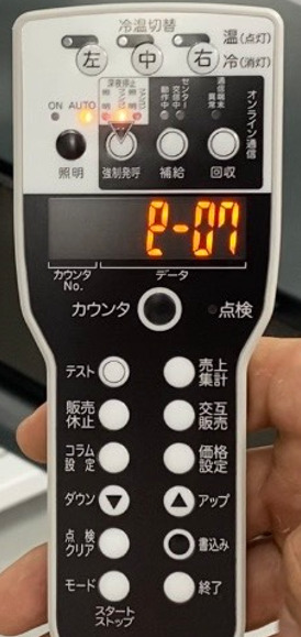 続けて『アップ』キーを押し、〈e-07〉が表示されたら再度『書込み』キーを押します