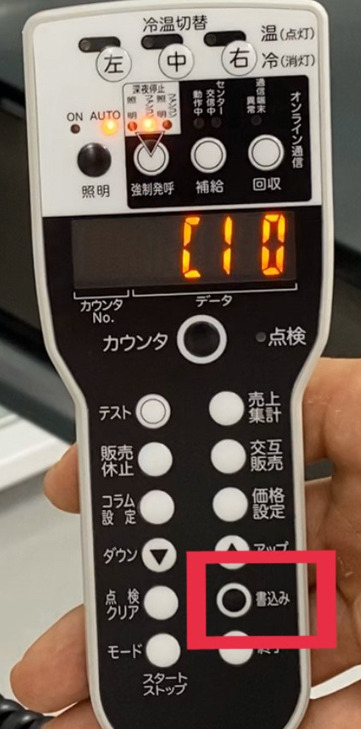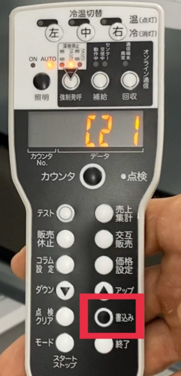 リモコンの画面が〈e-〇〉と表示されたら『書込み』キーを押します