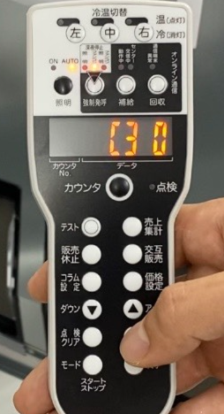 1.リモコンの『モード』キーを押した後、『アップ』キーを押していきます